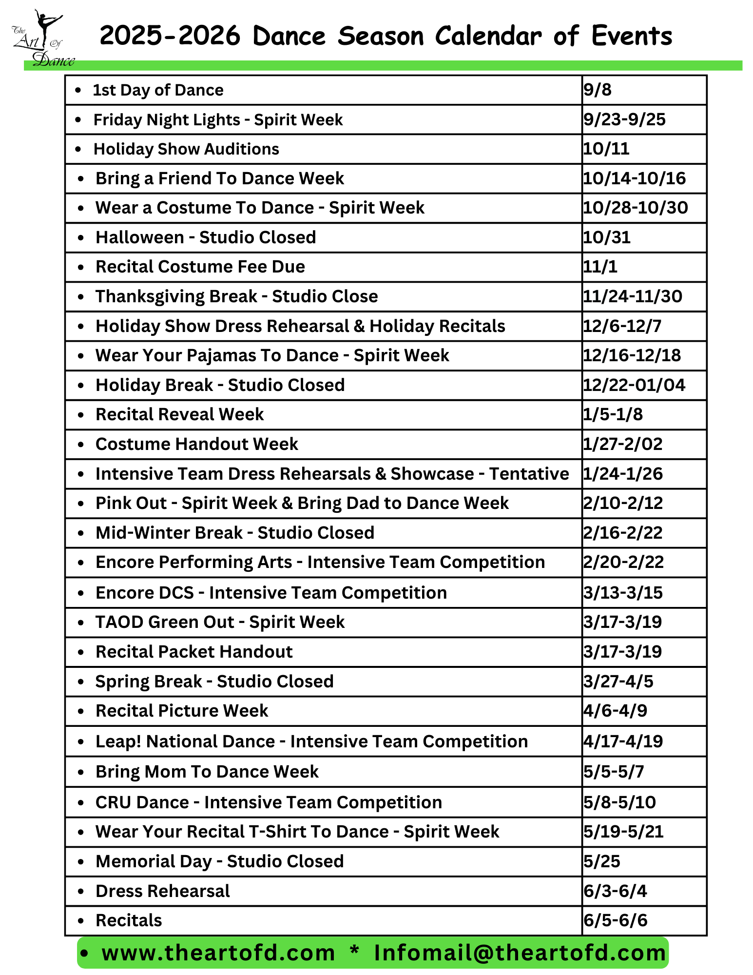 DANCE SCHEDULE